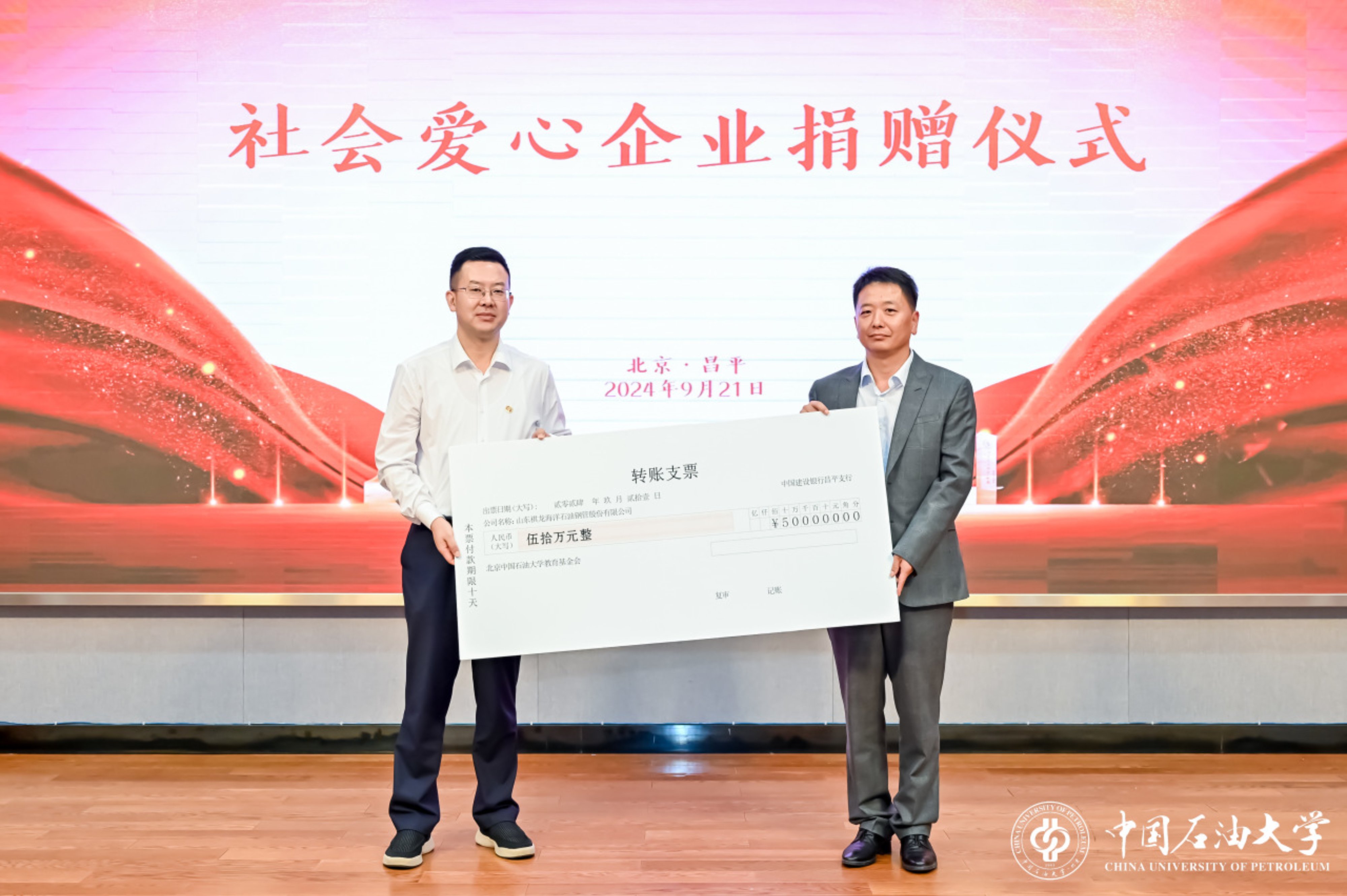 会上,北京德美高科科技股份有限公司董事长张德斌、山东祺龙海洋石油钢管股份有限公司总经理孟庆滨分别代表两家爱心企业,为学校捐赠100万元、50万元。文永红代表北京中国p站中文网站教育基金会接受捐赠并颁发捐赠证书。