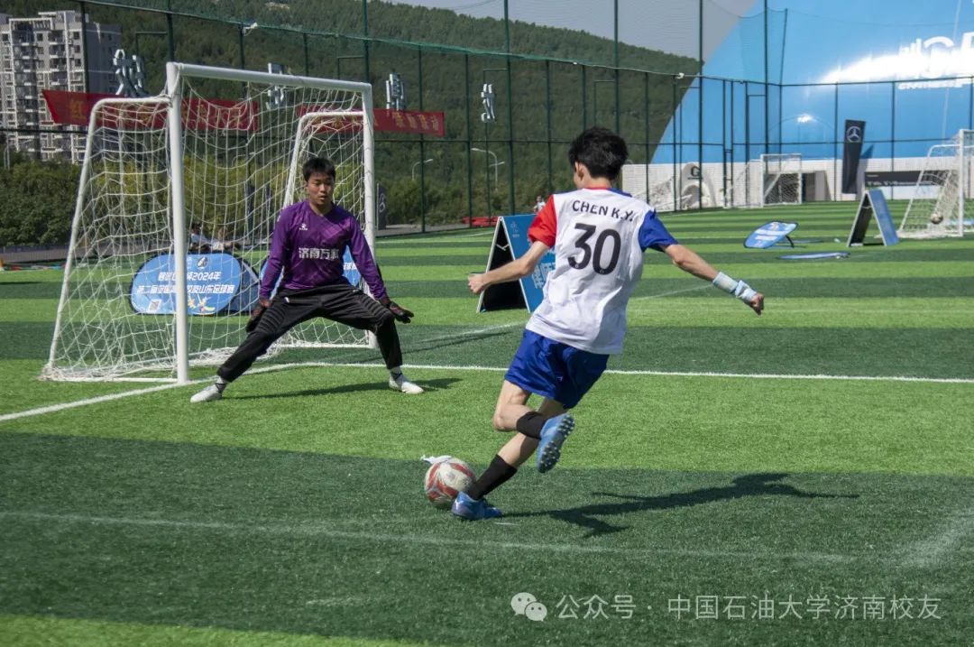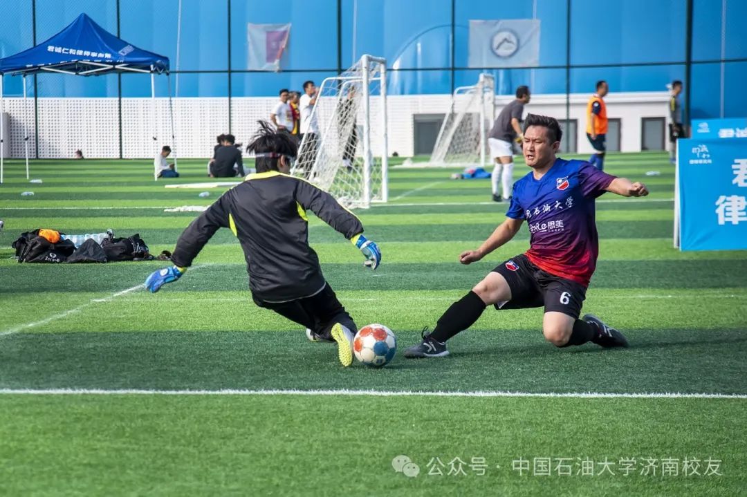 第2轮,我队对阵曾热身交流过的重庆大学济南校友队,一扫上一场失利的阴霾,逆势爆发,以5:1大胜,弥补了第一轮失利的净胜球差距,小组排名从最后一名升至第二名