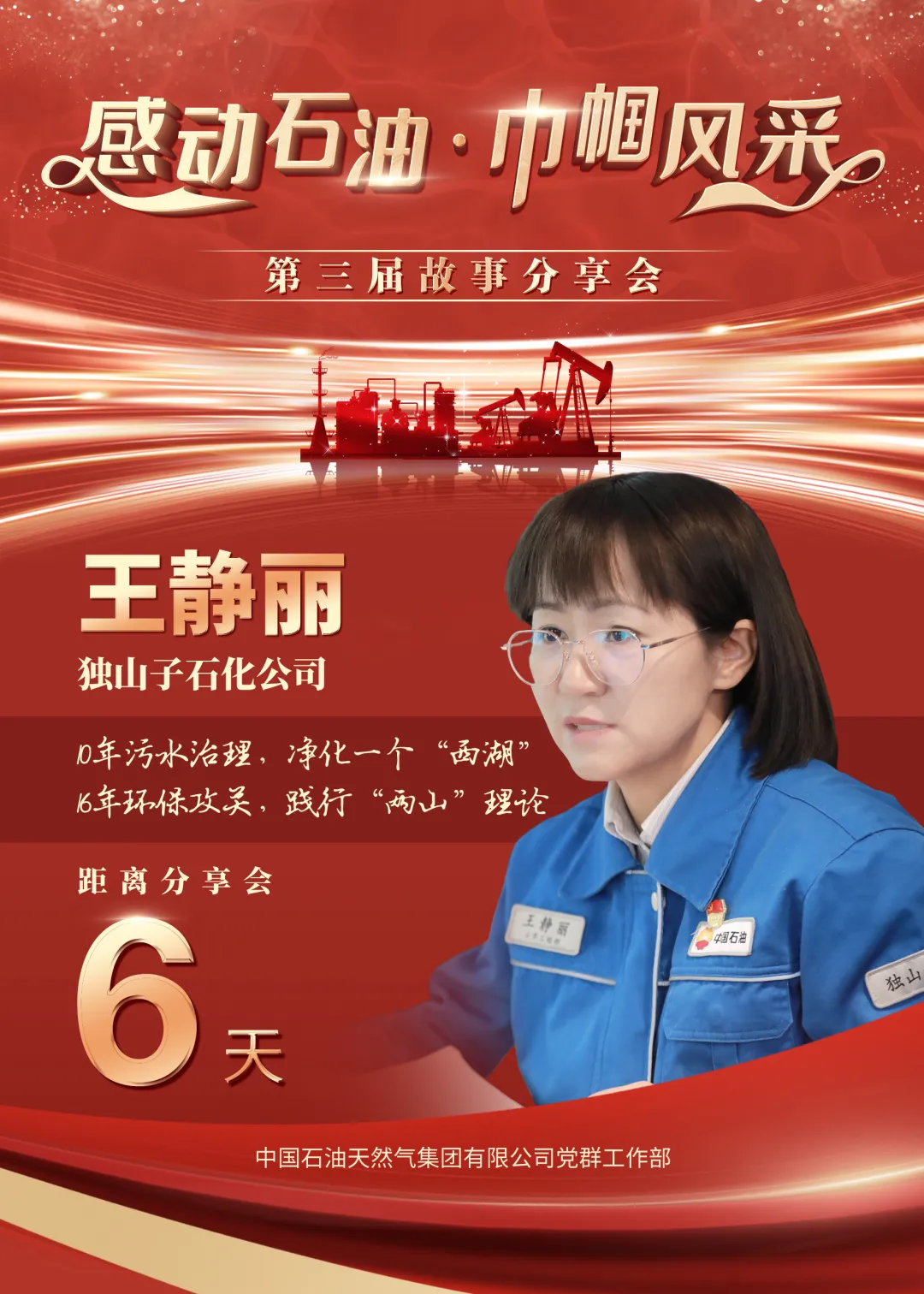 王静丽永葆“石油工人心向党”的政治底色,牢记“绿水青山就是金山银山”的使命担当,完成环保科技攻关12项,助力企业产生经济效益上亿元,同时增大污水回用对干旱缺水的新疆意义重大、社会效益显著。