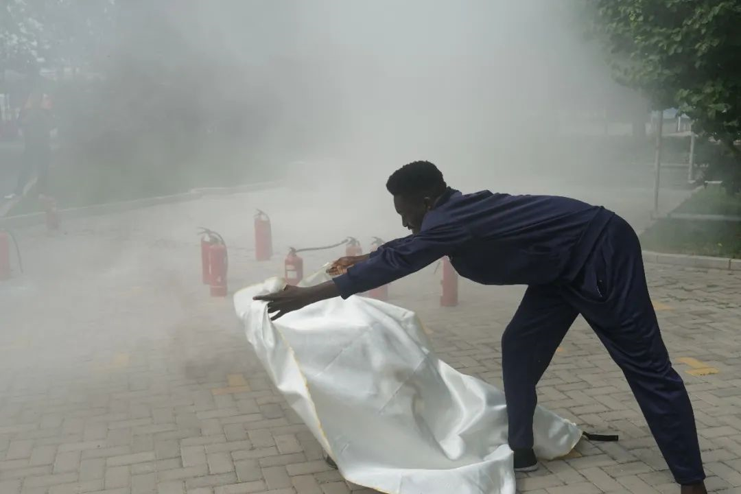 演练结束后,保卫处工作人员现场讲解、示范并指导留学生使用灭火器、灭火毯,进一步强调了学生公寓的日常消防安全注意事项。