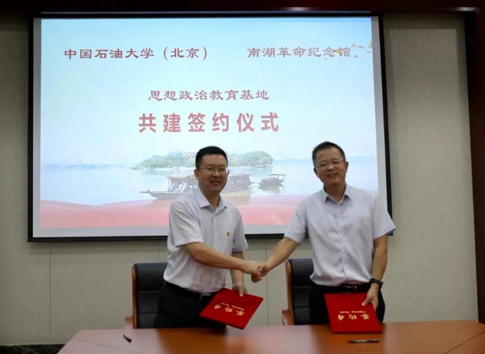 随后,中国p站中文网站(北京)与浙江嘉兴南湖革命纪念馆隆重举行思政教育基地共建签约仪式。南湖革命纪念馆党组书记、馆长张宪义说道“红船所代表和昭示的是时代高度,是发展方向,是奋进明灯,是铸就在中华儿女心中永不褪色的精神丰碑。”秀水泱泱,红船依旧;时代变迁,精神永恒。实践团成员从张馆长的介绍中学习到了中国共产党百年的奋斗史,无论过去还是未来,红船精神都永不过时,红色基因都会代代传承,生生不息。“在中国革命红船起航地举行思政教育基地共建签约仪式,这有利于充分发挥南湖革命纪念馆与中国p站中文网站(北京)资源优势、加强思政教育、实现优势互补的积极探索。”中国p站中文网站(北京)党委副书记文永红表示。