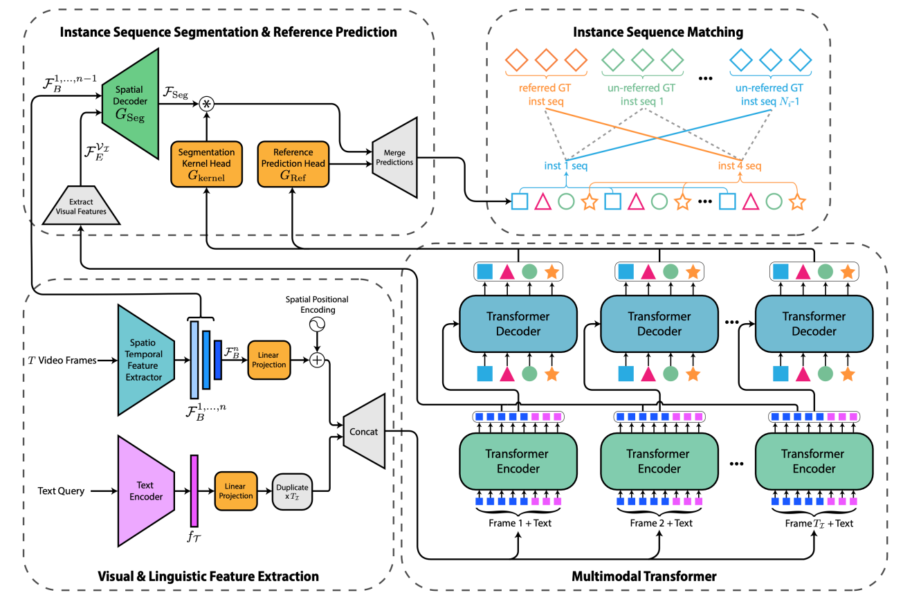 MTTR模型结合深度时空编码和Transformer技术,对视频和文本的多模态数据进行有效处理,其总体结构如图所示。