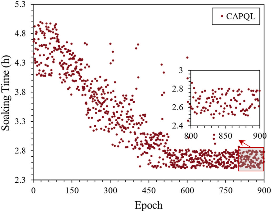 基于正交模拟实验,形成系统的数据集。经过特征提取和参数缩放预处理,将安装参数与喷射和静置时间联系起来。采用基于CAPQL多目标强化学习框架,建立了同时优化喷射时间和静置时间的马尔可夫决策过程环境。将该框架应用于选定的深海油气井验证。