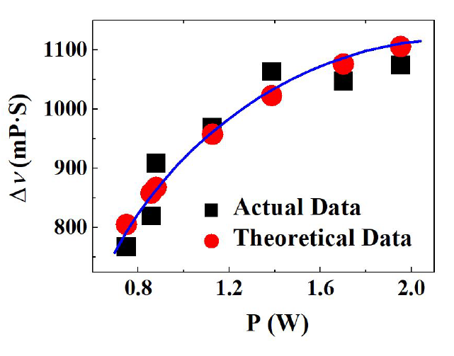 图4 原油粘度的变化量(∆v)随激光功率的变化。