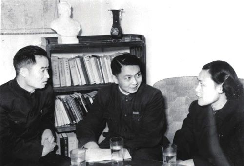 1961年,贾皞(左)与曹本熹(中)、李风在研究教学工作