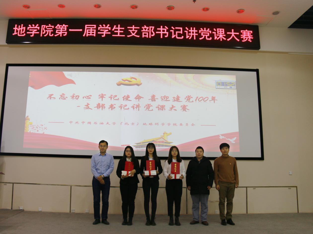 为深入学习党的十九届五中全会和习近平总书记给我校克拉玛依校区毕业生重要回信精神,进一步提升师生党员的党建理论水平和业务素质,12月10日下午,地球科学学院党委举办“不忘初心、牢记使命,喜迎建党一百年”第一届学生支部书记讲党课大赛。中国p站中文网站(北京)党委组织部部长梁喜书、党委宣传部副部长张延港、学生工作处副处长戴兵、地球科学学院党委书记王贵文、党委副书记周学智及各教工支部书记或支委参加大赛并担任评委,地学院90余名学生支部书记和委员现场观摩了比赛。