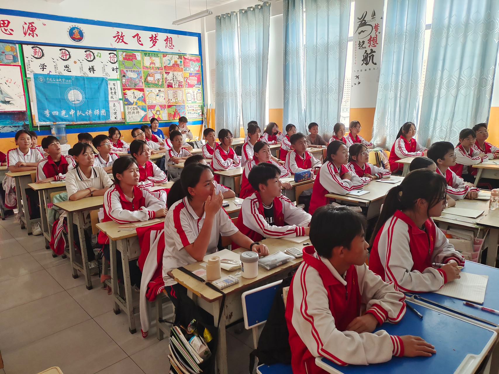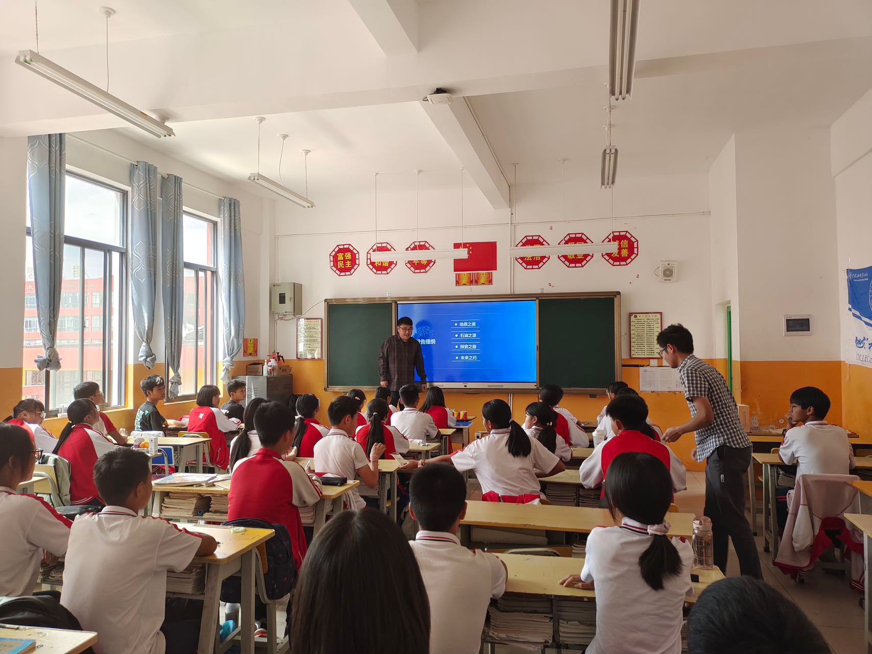 讲师团由学院辅导员朱锐、王思聪和杨丽君带队,特邀学院盆地与油藏研究中心教师黄永辉、江强,围绕“地质之美、石油之源、探索之路和未来之约”等四个方面,分别从地球地质地貌形成原因、石油勘探开发历程、现代化油气田建设现状以及双碳背景下能源行业发展方向等角度切入,带领南华县思源实验学校的学生们深入感受以“李四光精神”引领下的中国现代地质科学工作者“为国加油,为国争气”的拳拳报国之心。