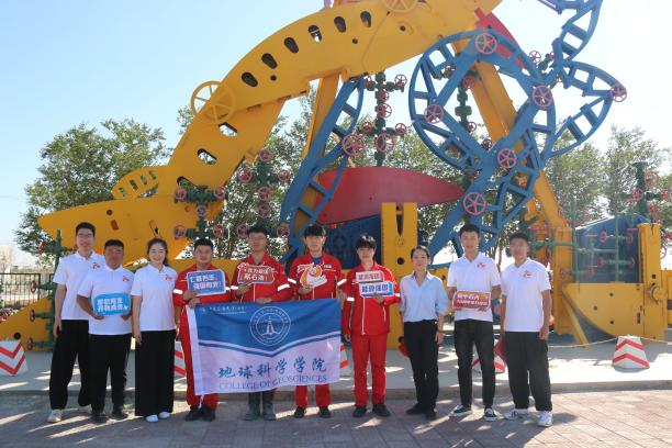实践团与校友们还来到位于克拉玛依市白碱滩区的新中国第一口日产超百吨的“英雄193井”,聆听英雄事迹,实地调研学习,在现场与校友们共同唱响校歌《我为祖国献石油》,大家在激扬高亢的旋律中更加坚定了“能源报国”“能源强国”的决心。