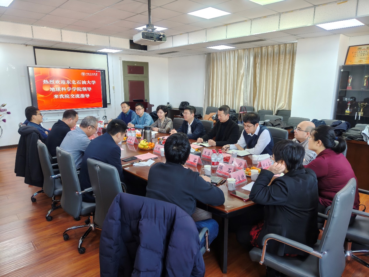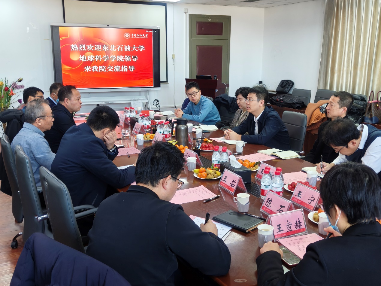 2025年1月10日,东北p站中文网站地球科学学院党委书记韦丹宁、院长孙雨一行8人到我院走访交流。我院党委书记姜福杰、院长王贵文等8人参加了会议。