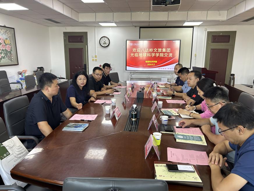 2024年9月2日下午,八达岭文旅集团副总经理蔡子翠带队到地球科学学院洽谈合作。地球科学学院党委书记姜福杰主持会议,地学院党委副书记王茹、副院长刘钰铭、地质学系教工党支部书记孙海涛、地质学系主任陈石、支部组织委员罗良和宣传委员孙晶老师参加了会议。