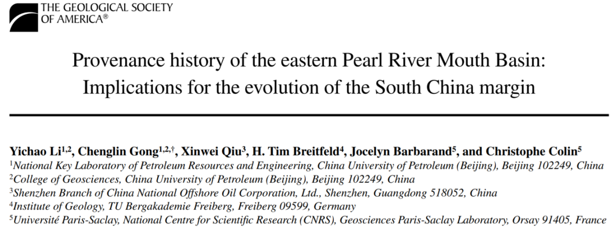 近日,我校地球科学学院博士生李一超,在龚承林教授指导下,与中海油深圳分公司邱欣卫博士、德国弗莱贝格工业大学H. Tim Breitfeld博士、法国巴黎萨克雷大学Jocelyn Barbarand教授和Christophe Colin教授合作完成的研究成果《Provenance history of the eastern Pearl River Mouth Basin: Implications for the evolution of the South China margin》发表在地学领域著名期刊《GSA Bulletin》上(见下图)。论文第一作者为我院博士生李一超,通讯作者为龚承林教授,中国p站中文网站(北京)油气资源与工程全国重点实验室和地球科学学院为第一完成单位。《GSA Bulletin》是地球科学领域的中科院一区top和JCR Q1期刊,具有重要的学术影响力,五年平均影响因子为4.1。