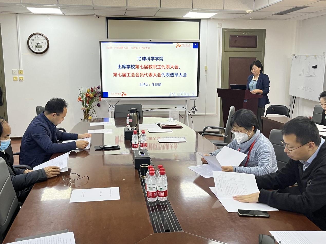 2023年11月24日下午,在学院工会的组织下,地球科学学院第五届三次教职工代表大会在地质楼1105顺利召开,共有25名正式代表和4名列席代表参加。会议由学院党委书记姜福杰、工会主席牛花朋分别主持两项议程。