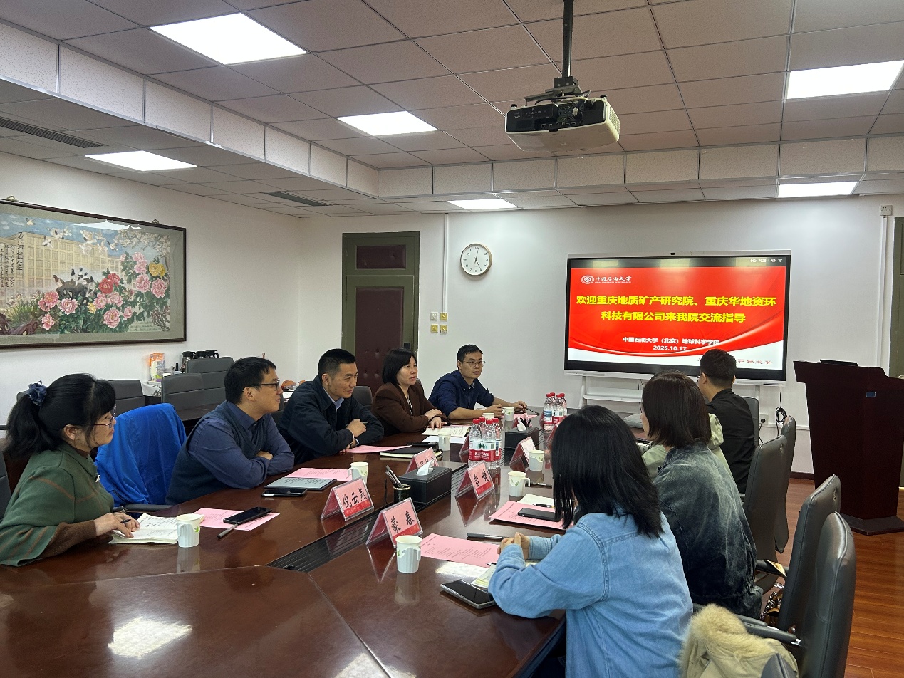2025年10月17日,重庆地质矿产研究院页岩气分院院长张烨、重庆华地资环科技有限公司党委副书记、纪委书记雷婕一行来我院走访交流,地球科学学院党委书记刘钰铭、副院长罗情勇、牛花朋等在1105会议室进行了接待。会议由地球科学学院副院长罗情勇主持。