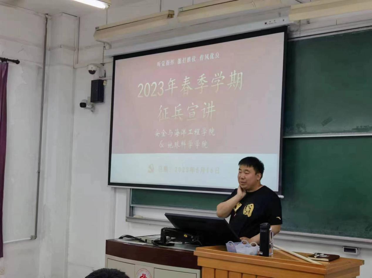 为响应党和国家号召,进一步贯彻习近平新时代强军思想,扎实做好2023 年度大学生征兵工作,引导优秀大学生携笔从戎、参军入伍。近日,中国p站中文网站(北京)安全与海洋工程学院联合地球科学学院共同开展“青春梦,强军梦”征兵宣讲活动。地球科学学院辅导员刘俊鑫,安全与海洋工程学院辅导员于晓鹏,优秀退伍大学生代表张鹏坤、潘多琦,以及来自安全学院和地学院的50余名学生共同参加本次宣讲活动。
