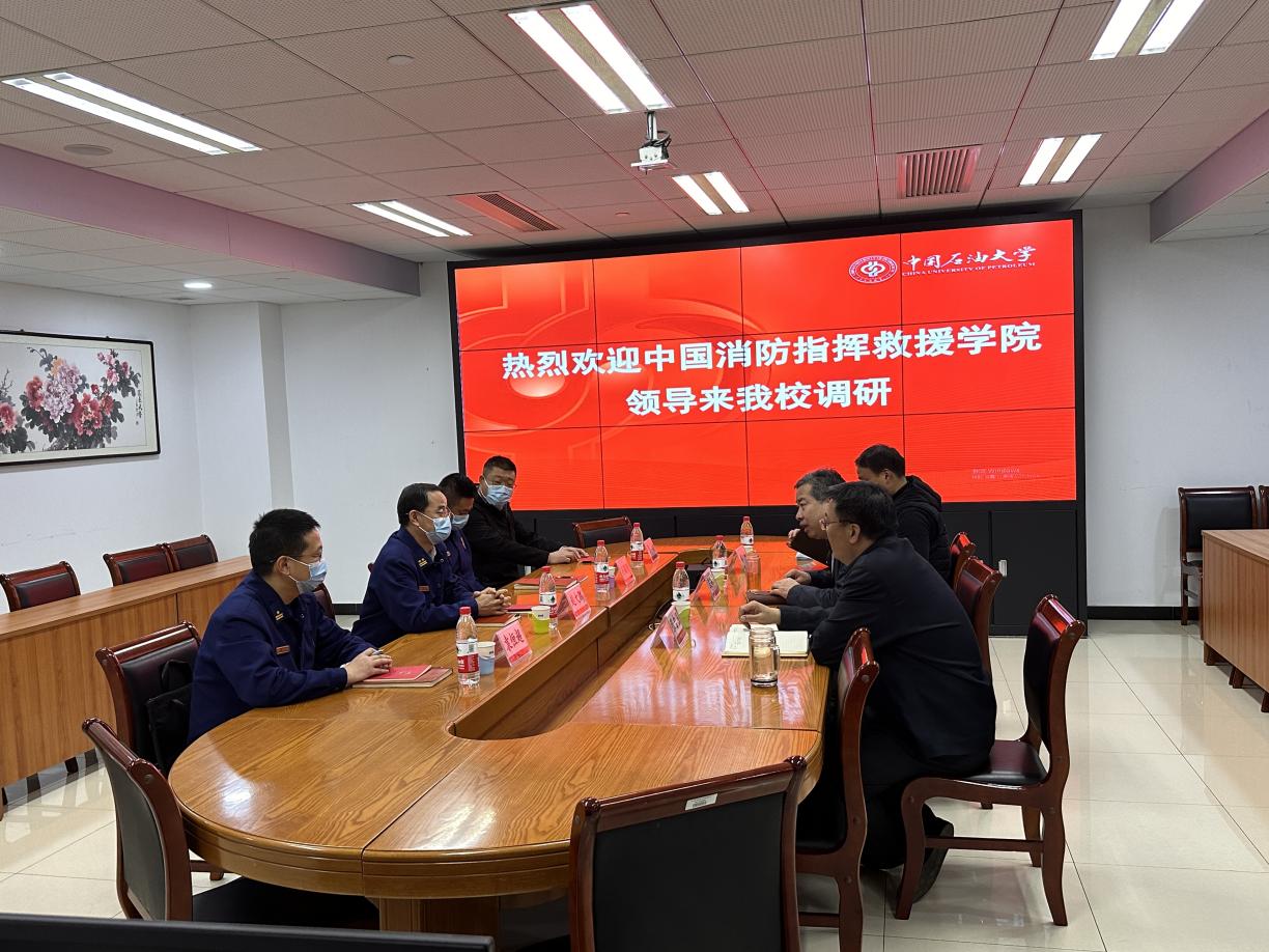 3月9日上午,中国消防救援学院后勤处处长赵大鹏一行来我校调研交流。中国p站中文网站(北京)后勤管理处处长王英国、书记张自强、副处长郭峰参加了座谈会。