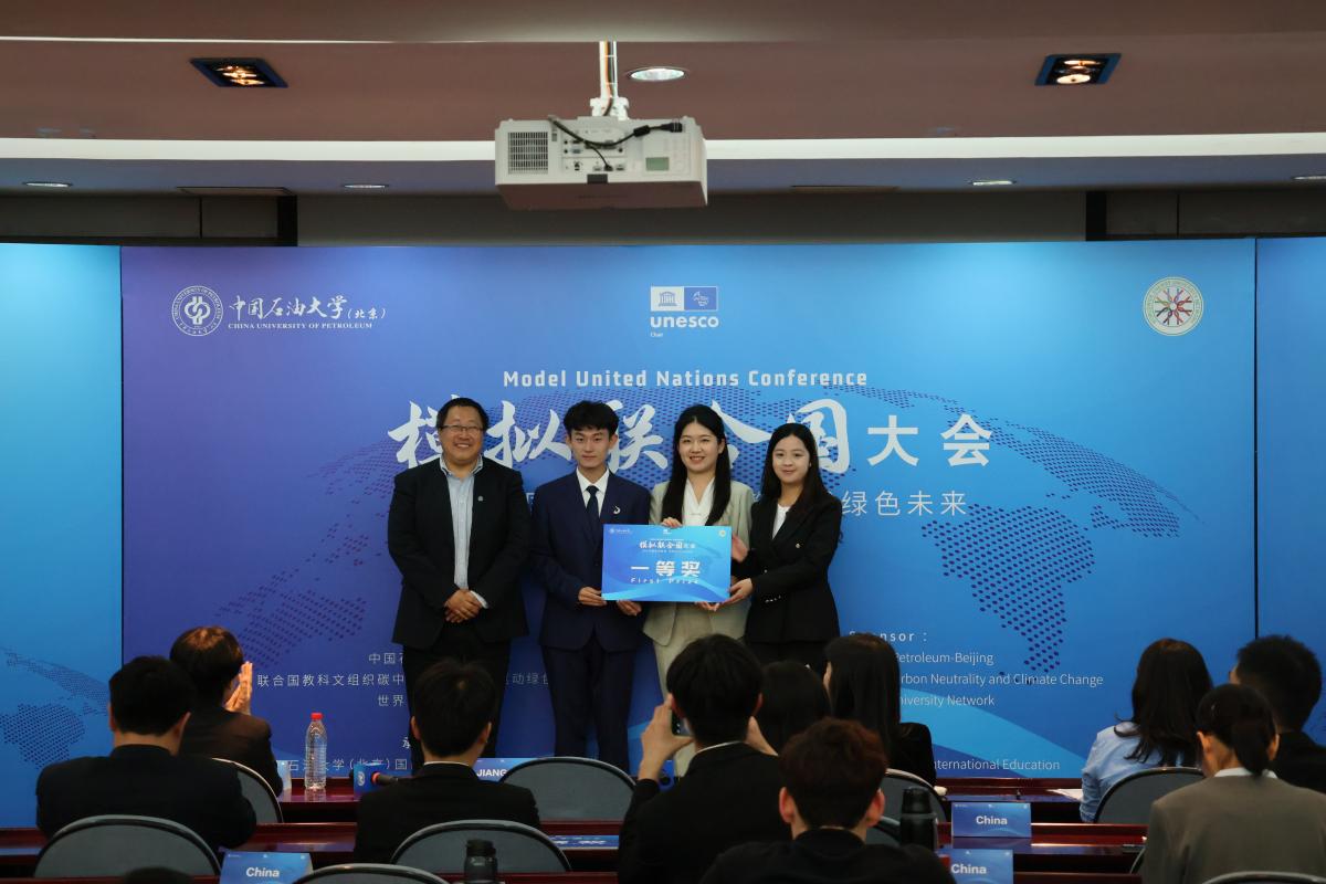 5月7日,以“讲好中国能源故事,共筑全球绿色未来”为主题的模拟联合国大会在中国p站中文网站(北京)举办。中石大副校长张广清,联合国工业发展组织投资和技术促进办公室(中国・北京)环境与气候议题负责人姜灏,中科浩博国际教育科技(北京)有限公司总裁孙中雯,学校国际合作与交流处、国际教育学院、教务处、外国语学院相关人员,来自中国、巴基斯坦、土库曼斯坦、南苏丹、蒙古、孟加拉国等24个国家的100名青年学生围绕气候变化、能源转型与可持续发展等议题展开深入对话。