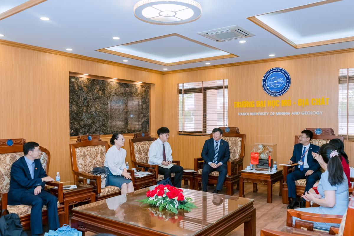 在河内矿业地质大学,该校副校长阮玉庆(Nguyen Ngoc Khanh)接待了韩克飞一行。作为世界能源大学联盟成员高校,该校与中石大有着密切的交流与合作。双方回顾了两校的合作情况,围绕世界能源大学联盟建设、学生实习项目、国际联合科研等领域的合作进行了交流。