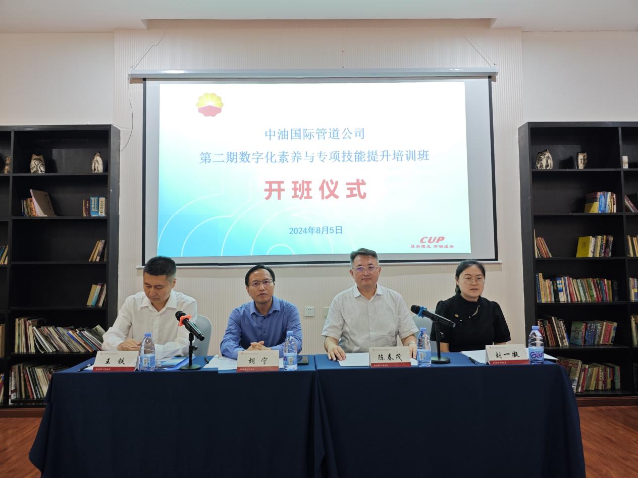 2024年8月5日,由中国p站中文网站(北京)承办的中油国际管道公司第二期数字化素养与专项技能提升培训班顺利开班。中油国际管道公司总经理助理、发展计划部主任胡宁,中国p站中文网站(北京)网络与继续教育学院院长陈春茂,网络与继续教育学院副院长刘一凝,学员代表中哈气阿拉木图输气管理处主任钱光辉出席开班式并讲话,中油国际管道公司信息中心主任王铁主持开班式。