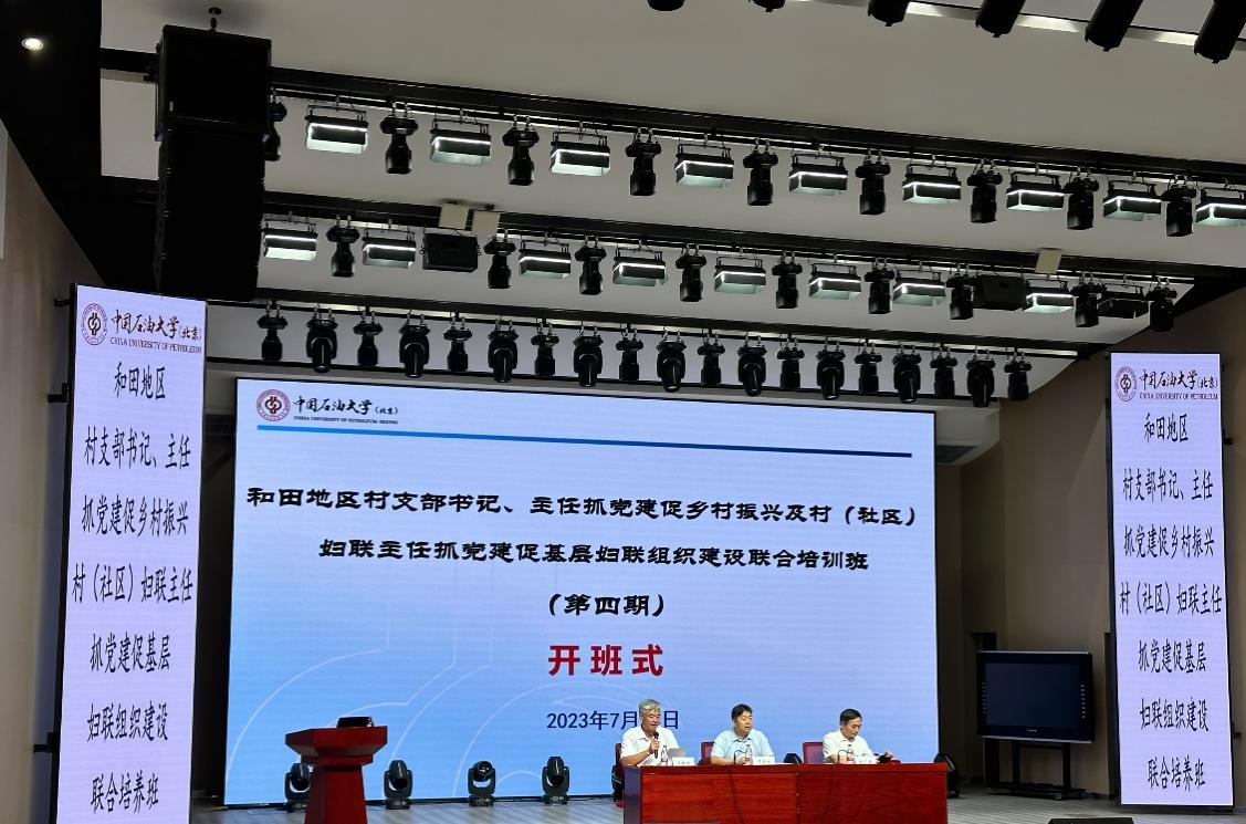 2023年7月24日上午,由中共新疆维吾尔自治区和田地区委员会组织部委托中国p站中文网站(北京)网络与继续教育学院承办的“和田地区村支部书记、主任抓党建促乡村振兴及村(社区)妇联主任抓党建促基层妇联组织建设联合培训班(第四期)”顺利开班。中共新疆维吾尔族自治区和田地区委员会组织部部长、党校校长罗彦林、中国p站中文网站(北京)副校长张广清出席开班式并讲话,中国p站中文网站(北京)网络与继续教育学院院长陈桂刚主持开班仪式。