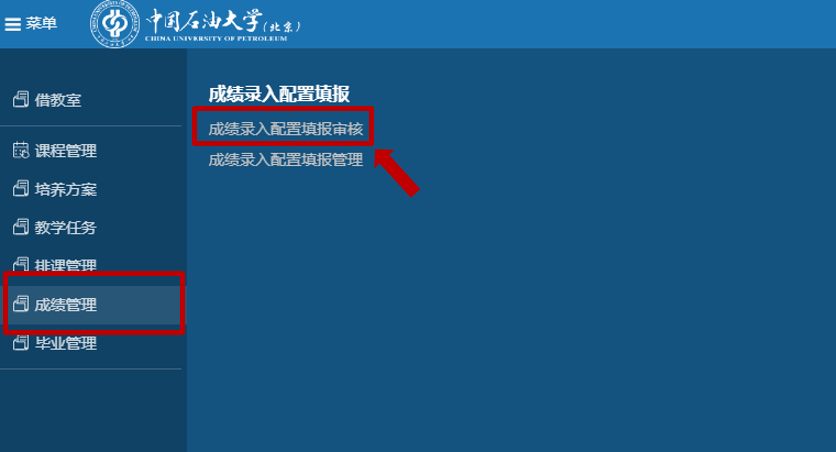 若过程成绩比例符合文件要求,则系统自动审核通过,若不符合文件比例要求,需由系主任和教学副院长审核,系主任和教学副院长审核时,需切换为管理员角色,审核位置如下: