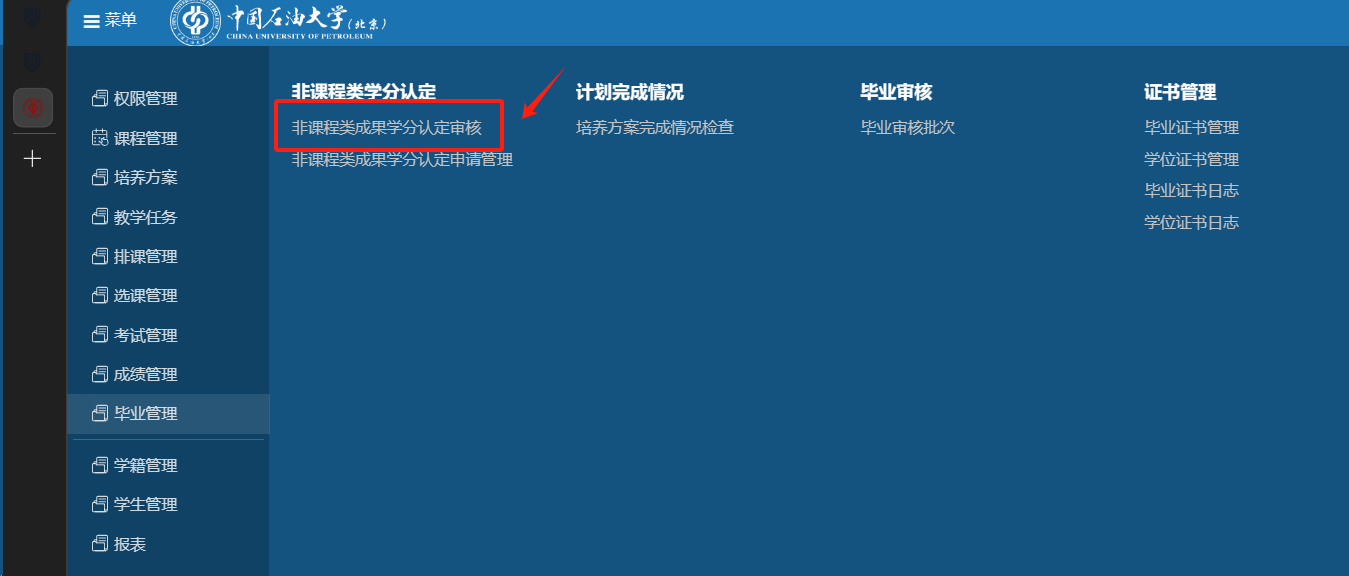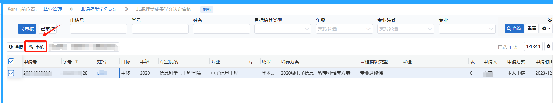 毕业管理 》非课程类学分认定 》非课程类成果学分认定审核