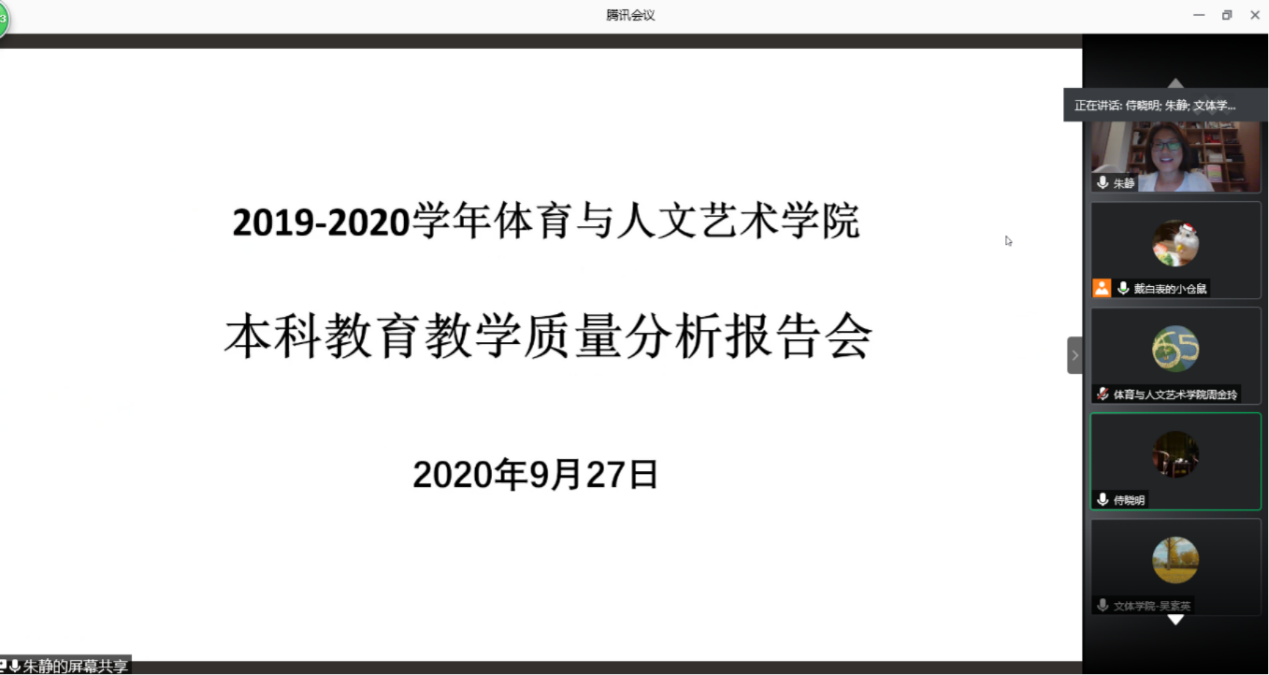 体育与人文艺术学院的质量分析报告会上,体育、人文和艺术三个学科的教研室主任分别从教学运行、教学管理等多个角度对各学科过去一年中取得的成果进行总结,例如线上直播的中国p站中文网站(北京)云运动会等。最后,朱静院长提出了教学中尚存在的一些问题,督促各教研室及教学团队进行改进。