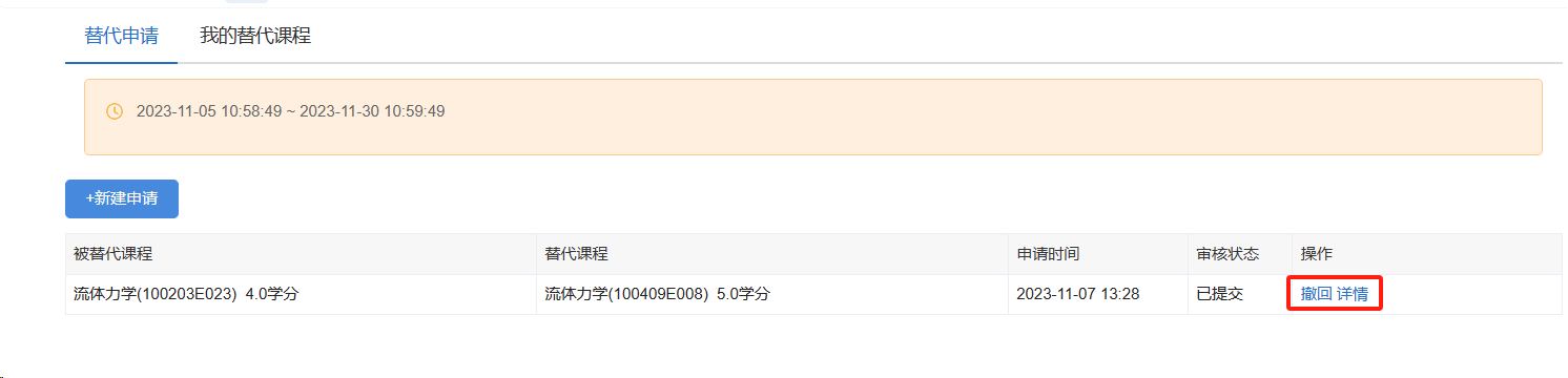 7.点击我的替代课程选项卡可以查看已经生效的课程替代关系