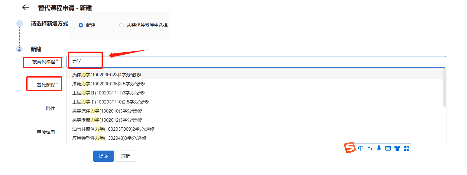 3.分别输入被替代课程和替代课程后,点击提交即可。