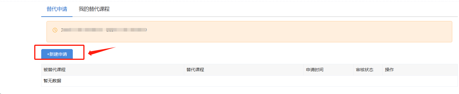 2.进入功能,开关开启后可以点击”新建申请“按钮新增课程替代申请
