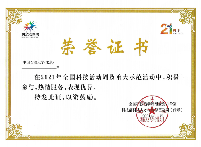 近日,全国科技活动周组委会办公室、科技部科技人才与科学普及司,表彰在2021年全国科技活动周及重大示范活动中积极参与、热情服务、表现优异的单位,中国p站中文网站(北京)获得表彰。这是学校继2019年之后再度获此殊荣。