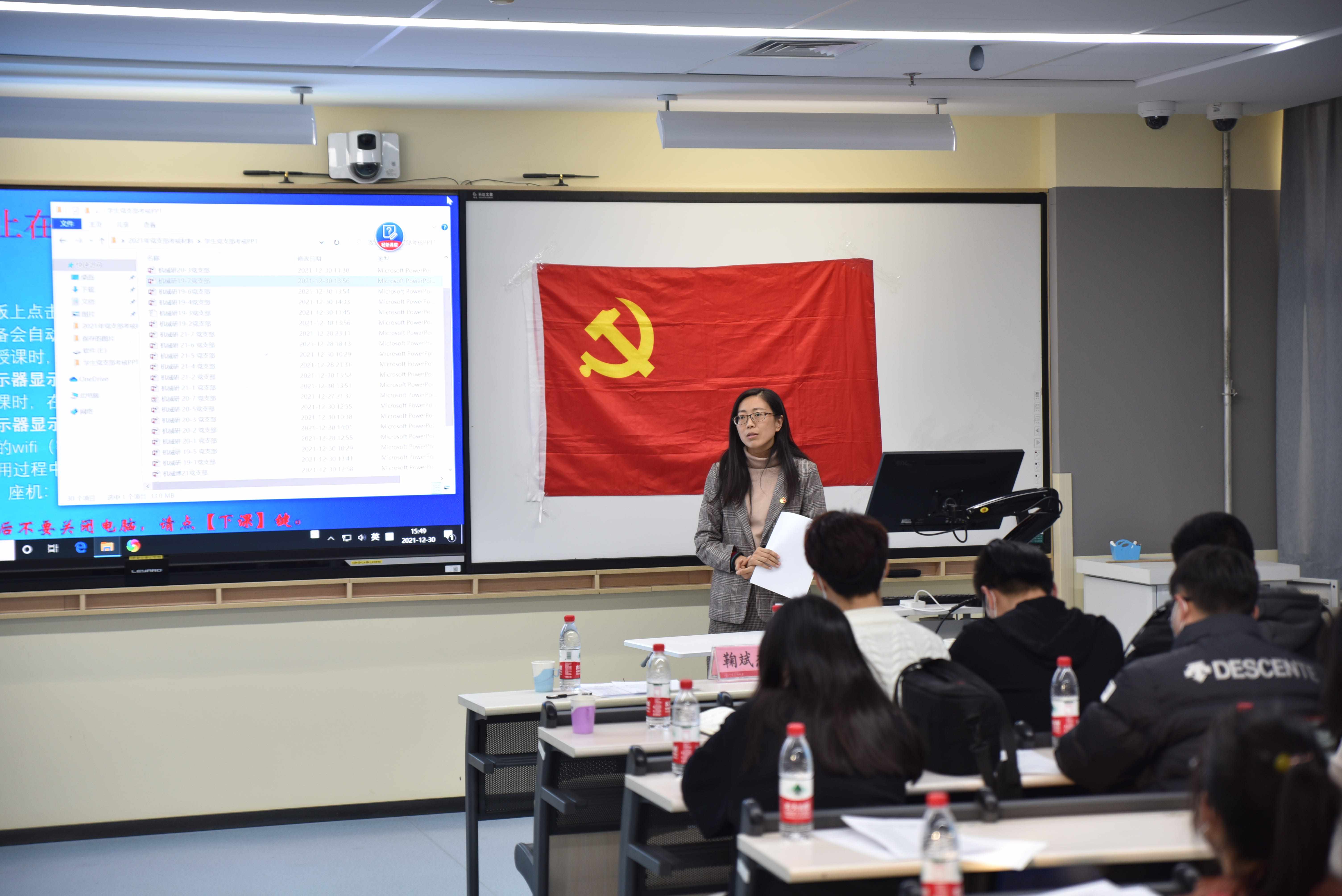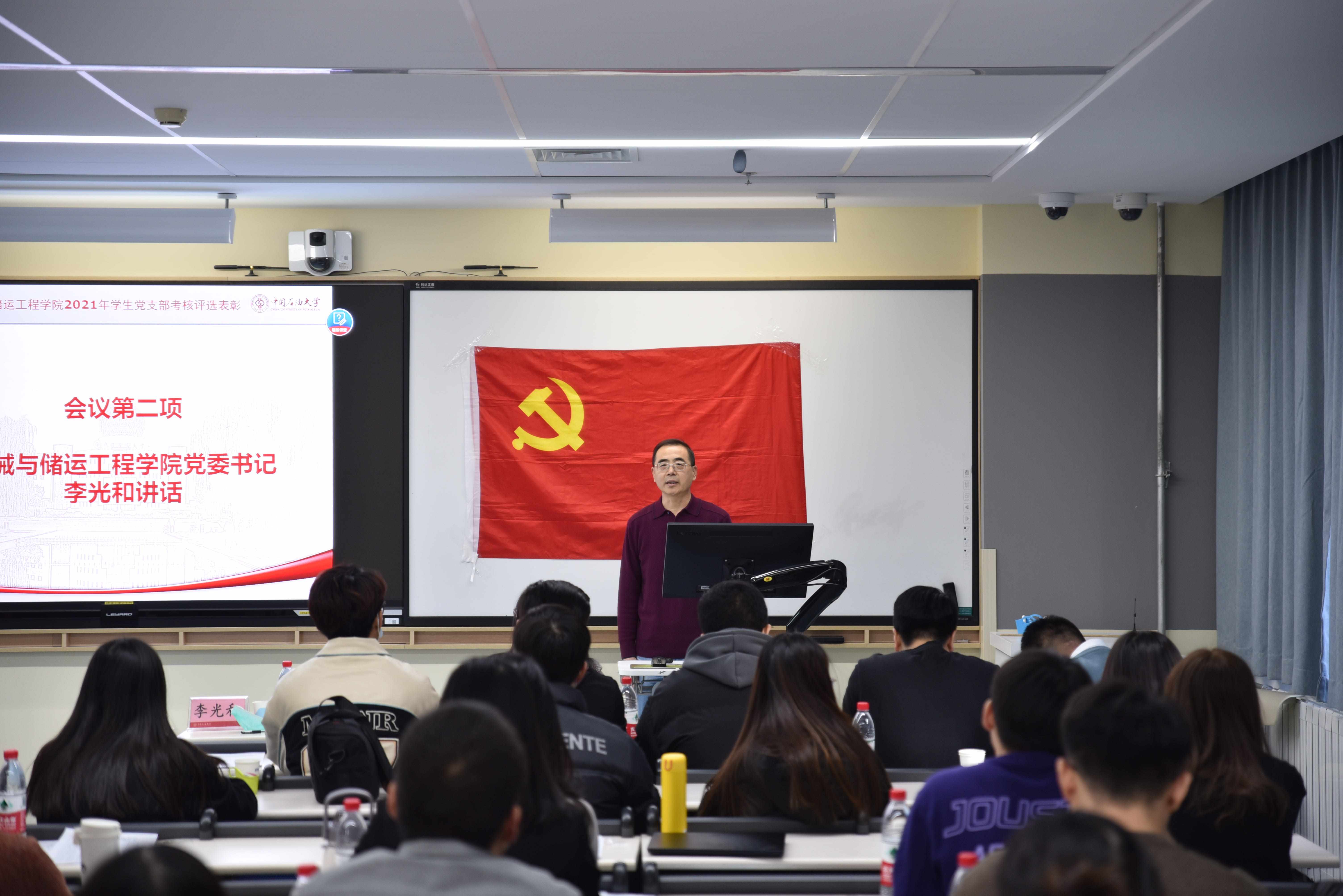 为深入学习贯彻习近平新时代中国特色社会主义思想,推进机械与储运工程学院学生党支部的标准化规范化建设,总结在党史学习教育和庆祝建党百年期间有关学习和建设情况,更好发挥学生党支部战斗堡垒作用和党员先锋模范作用,12月30日下午,机械学院召开2021年度学生党支部考核评选大会。机械与储运工程学院党委书记李光和、副书记鞠斌杰、全体辅导员参加会议。会议由辅导员陈化楠主持。