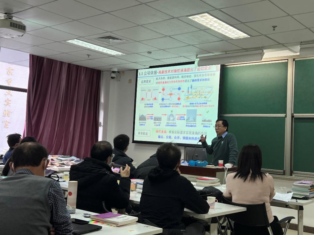 在听完讲座报告后,出席讲座的教师与王晓东教授就国家自然科学基金申报相关问题进行了热烈交流与讨论。涉及的问题包括撰写基金项目申请书时如何区分研究目标和研究内容、如何撰写研究方案部分、新领域基金项目申请如何撰写研究基础部分、如何凝练关键科学问题以及申请微纳液滴研究方向基金项目的经验等。