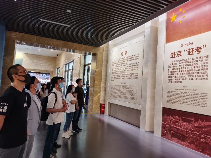 通过参观与讨论,同志们深刻认识到:“赶考”永远在路上!中国特色社会主义进入新时代,这是我国发展新的历史方位。我们应更加紧密地团结在以习近平同志为核心的党中央周围,高举中国特色社会主义伟大旗帜,坚持以习近平新时代中国特色社会主义思想为指导,增强“四个意识”,坚定“四个自信”,牢记“三个务必”,做到“两个维护”,为开启全面建设社会主义现代化国家新征程、夺取新时代中国特色社会主义伟大胜利、实现中华民族伟大复兴的中国梦不懈奋斗!