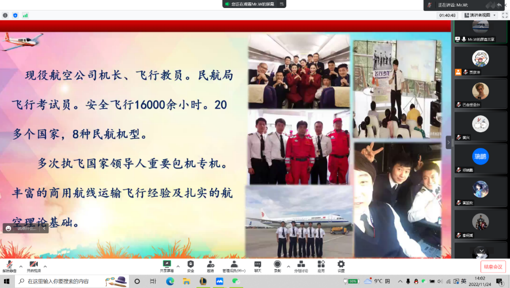 王飞以培训以学习航空英雄精神、提升思想政治素养为核心,通过生动详细的案例,展现了飞行员强烈的责任意识、牢固的章法意识、敬业的道德意识、和谐的团队意识和严谨的作风形象意识。