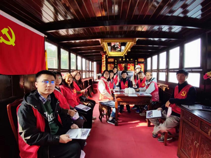 1921年7月,中国共产党第一次全国代表大会在上海代表李汉俊的家中进行,却突然遭到法租界巡捕的袭扰,紧急转移到嘉兴南湖的一条游船上继续进行,在这条船上,来自全国各地共13位党员代表同志与会讨论,伟大的中国共产党也由此诞生。为了切身体验中共一大会议场景,感受历史的厚重,参加活动的同志沉浸式地扮演,情景再现那个伟大的历史时刻,体验百年红船精神。