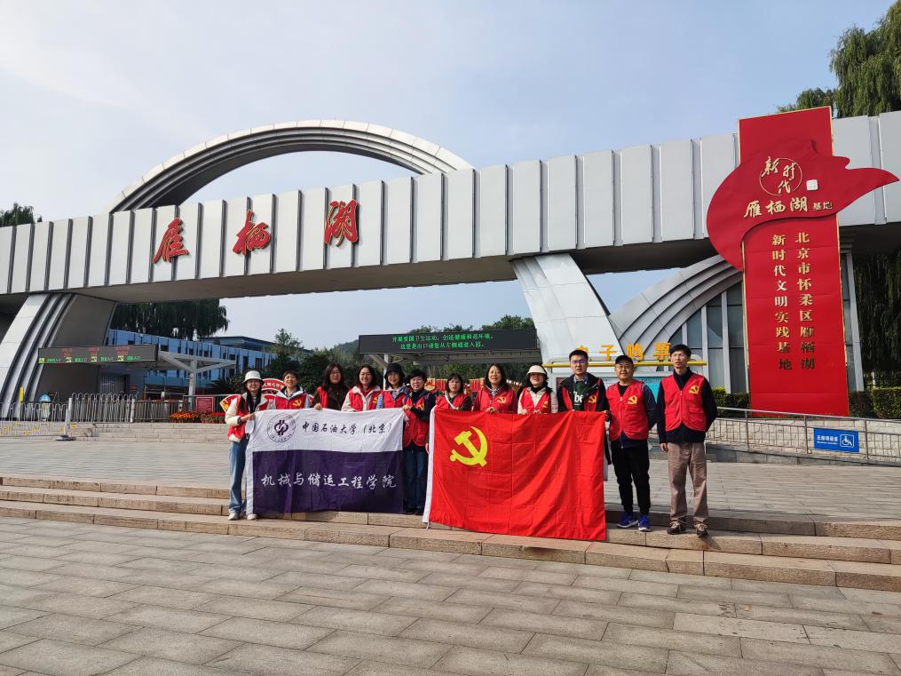 在北京雁栖湖党史教育基地,同志们首先共同瞻仰了金灯山五位战斗英烈雕像,聆听了1948年发生在此地战士们殊死抵抗,浴血奋斗的英勇事迹,并向革命先烈敬献花篮,默哀致敬。