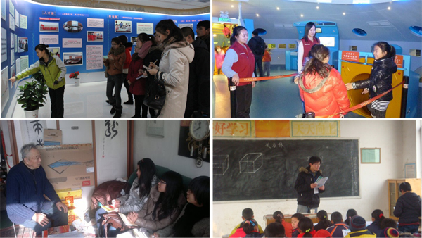 本次活动中,广大团员青年以组队或个人的形式,深入全国各地,开展了以十八大精神宣讲、“红色之旅”参观学习、社会调查、专业实践和志愿服务为主要内容的实践活动。地球科学学院组织社会实践团赴铁人王进喜纪念馆和大庆油田历史陈列馆,学习铁人精神,了解石油工业发展历史;石油工程学院实践团赴天津市蓟县孙各庄满族乡开展十八大精神专题宣讲和实践调研,为村民解析十八大报告中“促进农业现代化”“推动城乡一体化”“加强社会主义新农村建设”等热点问题;化学工程学院、工商管理学院学生利用寒假到中国科技馆开展义务讲解、科技宣传、维持馆内秩序等服务,到社区、敬老院打扫卫生、整洁环境,为老人理发,清扫积雪,为当地中小学生进行寒假学业辅导,开展了“科技新馆志愿行”“社区活动风采展”“温暖社区你我他”“敬老爱幼我先行”和“爱心辅导寒假行”等系列志愿服务活动。机械与储运工程学院、提高采收率研究院学生寒假期间就近参观延安革命历史博物馆、南昌起义纪念馆和南京大屠杀纪念馆等爱国主义教育基地,接受革命历史教育,坚定报效祖国的理想信念;地球物理与信息工程学院、外国语学院学生针对家乡的城乡统筹发展、重大“民生工程”实施、农村增收脱贫及物价上涨对农民生活的影响等问题开展调查;