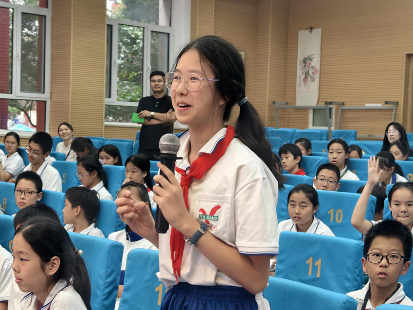 在“石油侦探小能手”互动环节,张来斌设计了有趣的活动,育英学校的孩子们踊跃参与,指出服装、文具等二十多种物品中的石油“基因”。“孩子们热情主动,勤于思考,知识面广,我们国家未来的科技事业后继有人!”孩子们展现出的科学素养与思考能力让张来斌赞赏不已。在提问交流环节,孩子们相继提出了“乙烷分子式”“人造石油技术”等颇具专业性的问题,张来斌耐心解答,为孩子们打开了更广阔的科学视窗。