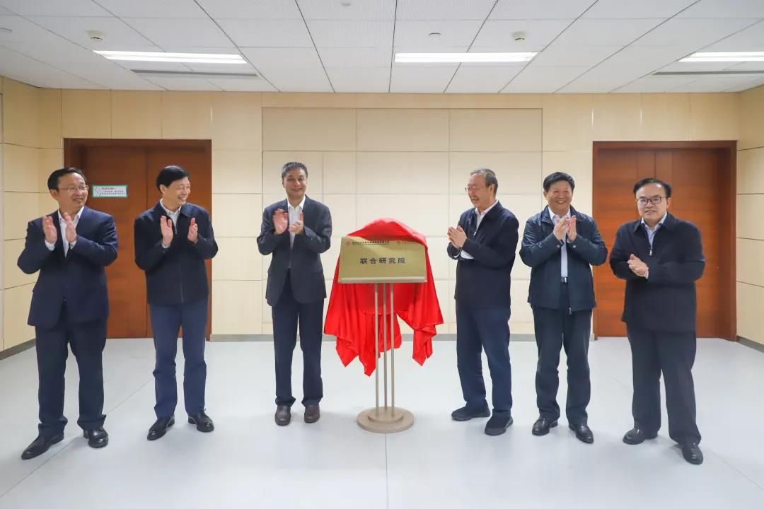 丁建林宣读联合研究院成立及人员任命文件,张来斌教授任联合研究院院长。刘中云和陈峰代表双方为联合研究院揭牌。