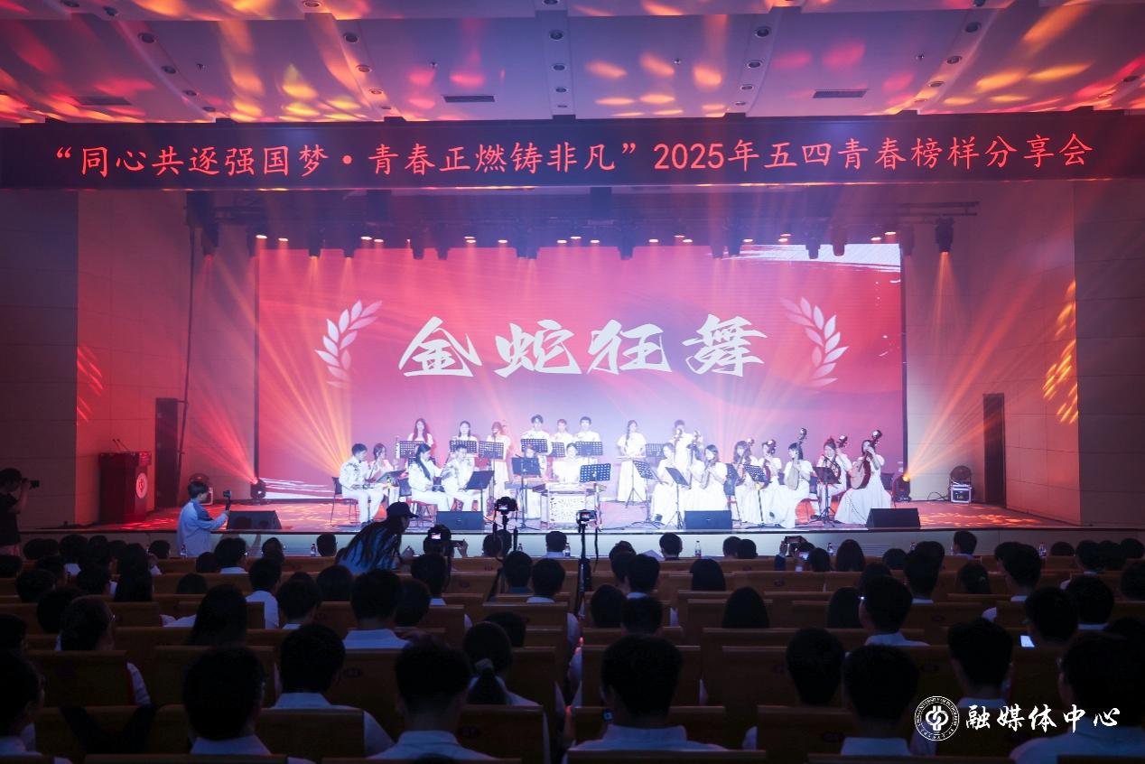 此次青春榜样分享会分为敬不凡、追非凡、创超凡三个篇章,生动诠释了中石大青年昂扬向上、锐意进取的精神风貌。开篇节目《金蛇狂舞》明快有力的节奏展现青年学子蓬勃青春活力。