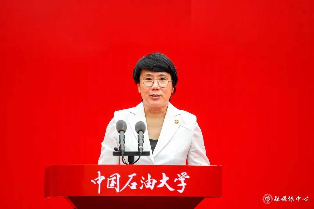 她说,惟有奋力奔跑,才能点燃梦想。69年来,中石大人始终在奔跑和接续奋斗中,让“我为祖国献石油”的梦想熠熠生辉,让“实事求是、艰苦奋斗、爱国奉献、开拓创新”的中石大精神得以根植和升华。惟有奋力奔跑,才能积蓄力量。奔跑的意义就在于无惧风雨、无畏挑战。只有克服困难、战胜挑战,才能获得拥抱明天、赢得未来的最大底气;只有勇敢奔跑,走出舒适区,才能向上生长、茁壮成长。惟有奋力奔跑,才能乘势而上。历史从不等待一切犹豫者、观望者、懈怠者、软弱者,“躺平”不可取、“躺赢”不可能,只有起而行之、抢抓机遇、奋力奔跑,才能赢得主动、赢得优势、赢得出彩人生。