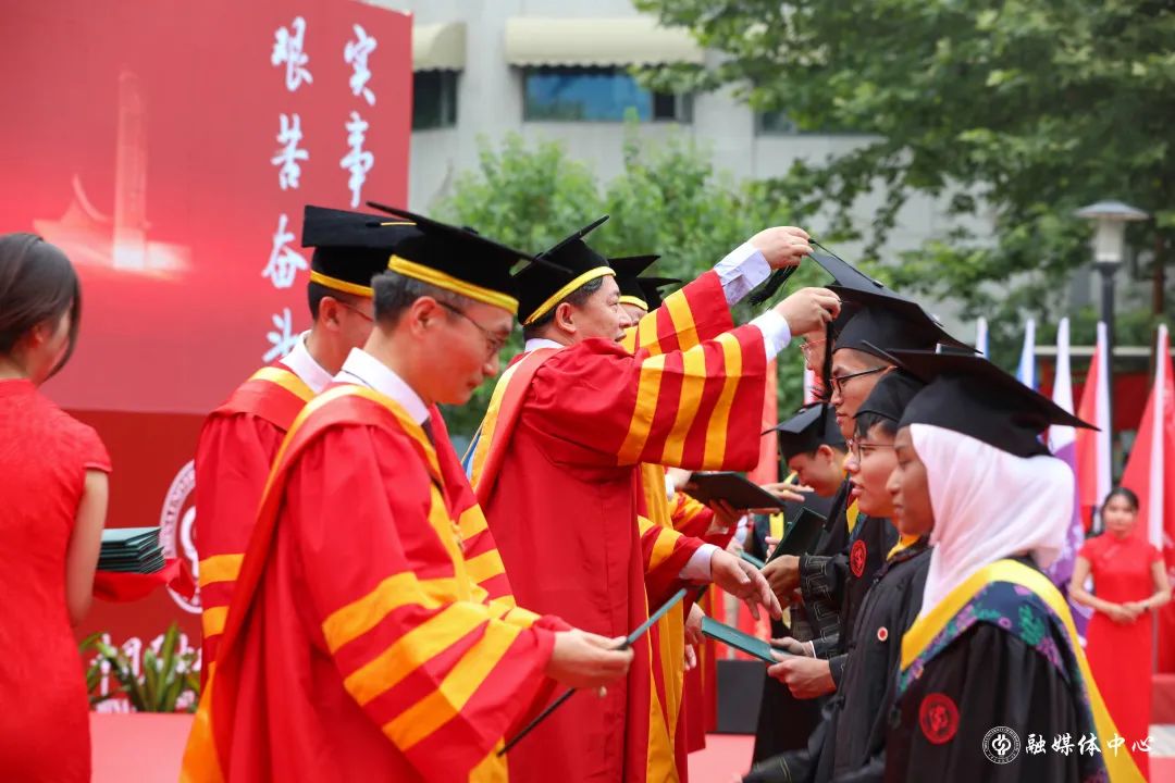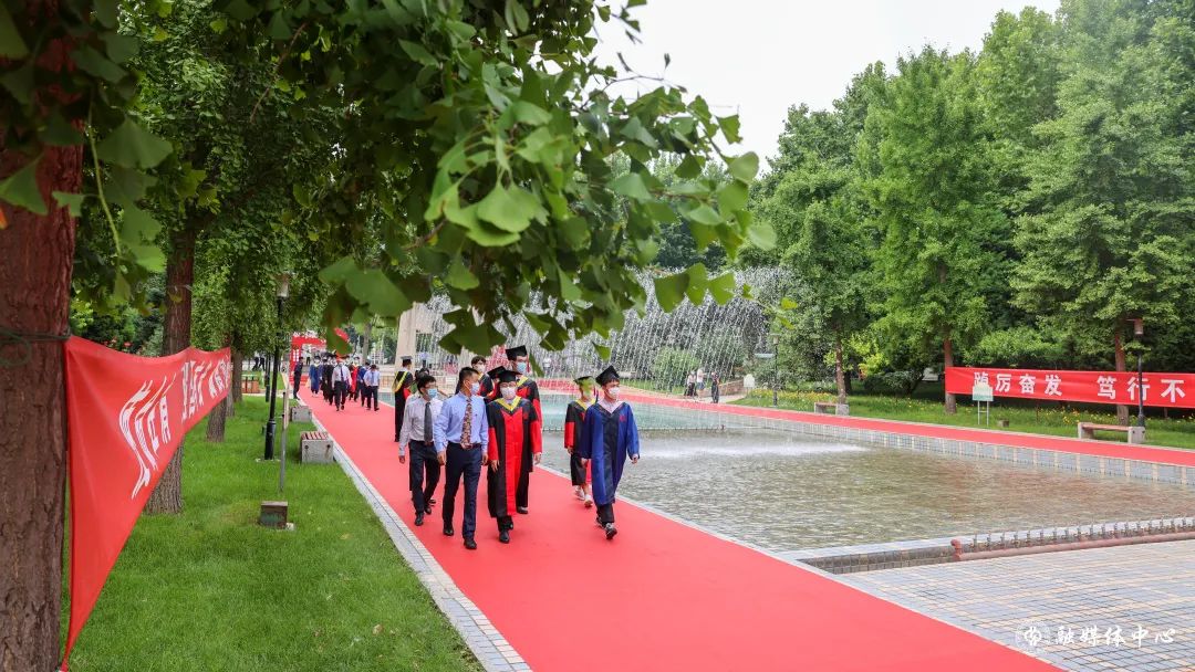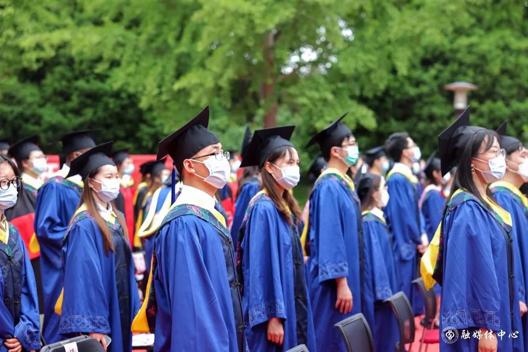 典礼主会场校本部青年园绿草如茵、红毯夺目、旗帜飘扬,氛围热烈而隆重。2022届在校的毕业生代表与师长们在现场共襄庆典,已离校的5000多名博士、硕士和本科毕业生通过“云端”参加典礼,共同接受母校和师长的祝贺与祝福。