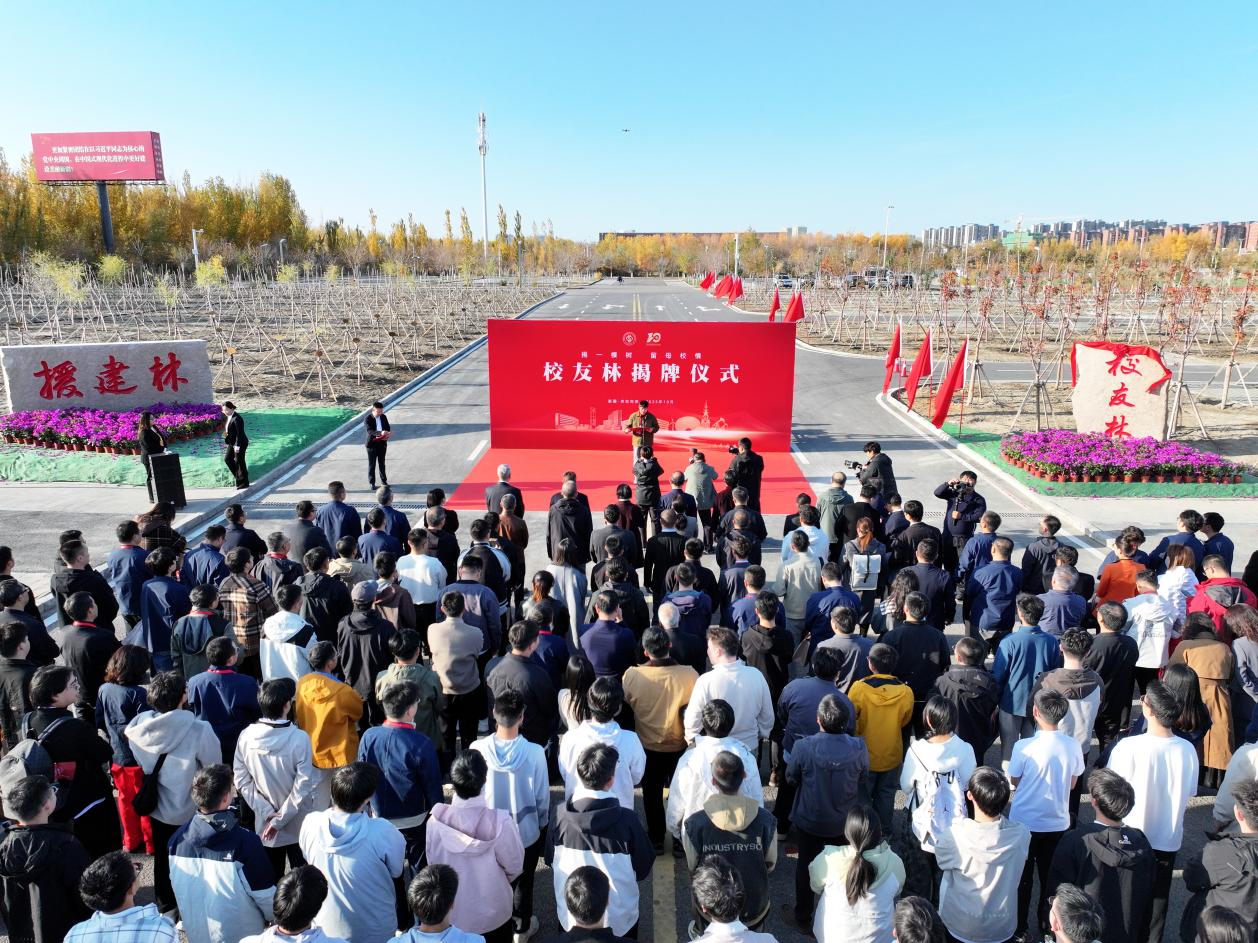 王同奇、文永红、李军、学校老领导和学校相关职能部门负责人、校友代表共同为校友林揭牌。