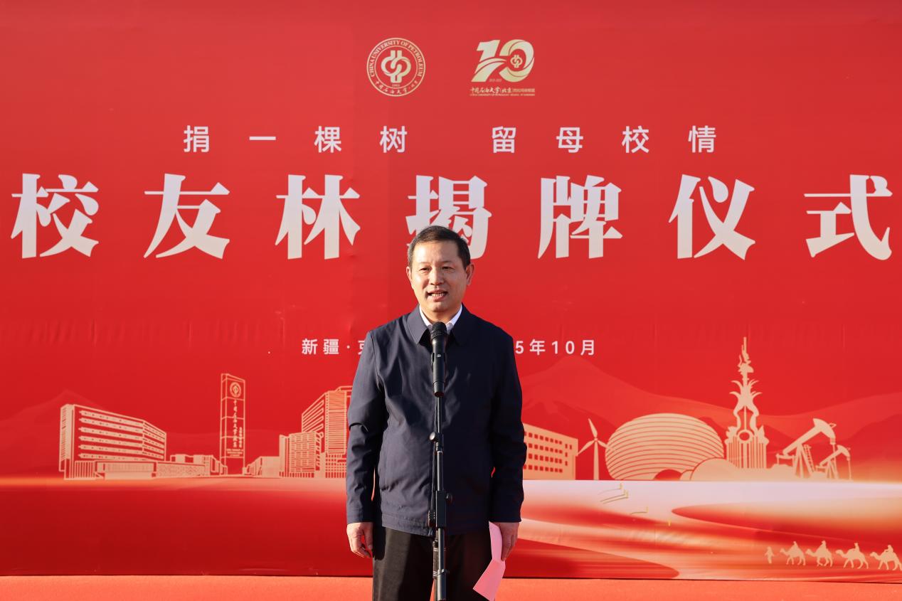 校友代表、克拉玛依校区2020届毕业生王良哲宣读《致全体校友倡议书》,倡议广大校友不忘初心使命,做石油精神的传承者、做服务新疆的奋斗者、做爱校情感的传播者。认捐树木校友代表、克拉玛依校区2020届毕业生董昊菲表达了对母校的感激之情,希望广大学子如树木般向下扎根、向上生长,在祖国最需要的地方历练成才。