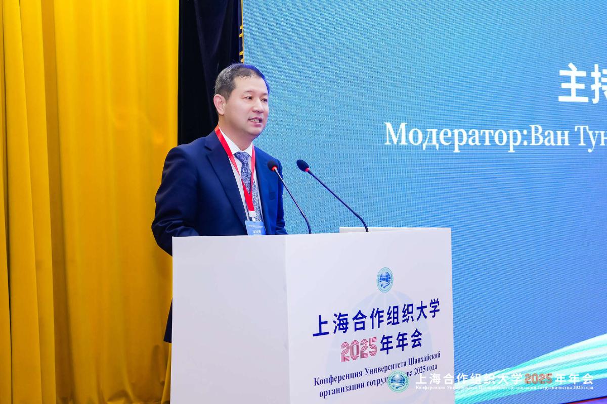 上海合作组织大学2025年年会由中国教育部指导,上海合作组织大学中方校长办公室主办,来自中国、俄罗斯、哈萨克斯坦、吉尔吉斯斯坦、塔吉克斯坦5个国家的教育部部长、副部长,来自7个国家86所高校的校长以及专家、学者出席。
