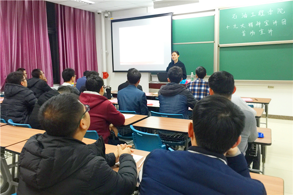 近日,石大学习宣传贯彻党的十九大精神不断推进,石油工程学院、机械与储运工程学院分别成立了学习宣传贯彻党的十九大精神学生宣讲团,在师生中积极开展系列宣讲活动。