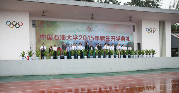 校长张来斌在开学典礼上发表讲话,希望2015级新生能与石大心相通、行相随,在石大增长学问和见识,找到通往梦想的路,不辜负昨日的努力,不愧对明天的梦想,成就最好的自己。
