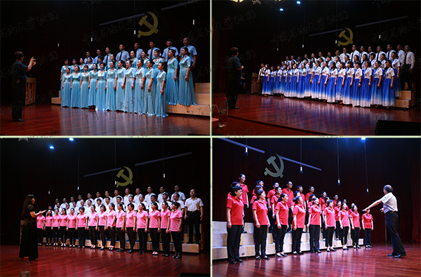 6月29日,由党委组织部、党委宣传部、校工会联合举办的庆祝建党九十六周年教职工合唱展演在教职工活动中心报告厅举行。共有来自18个单位的700余名教职工参加演出。校领导山红红、张来斌、刚文哲、雷玉江、吴小林、庞雄奇、张士诚,副校级干部鲍志东,以及教职工代表观看了演出。