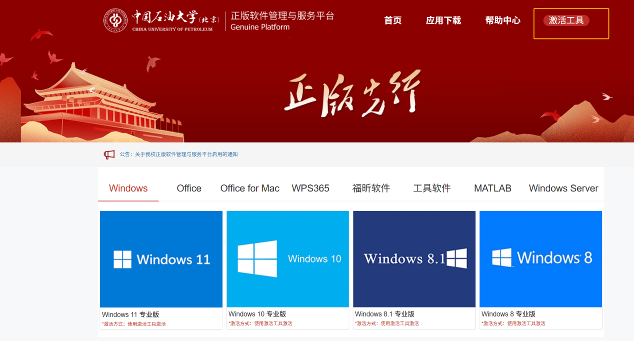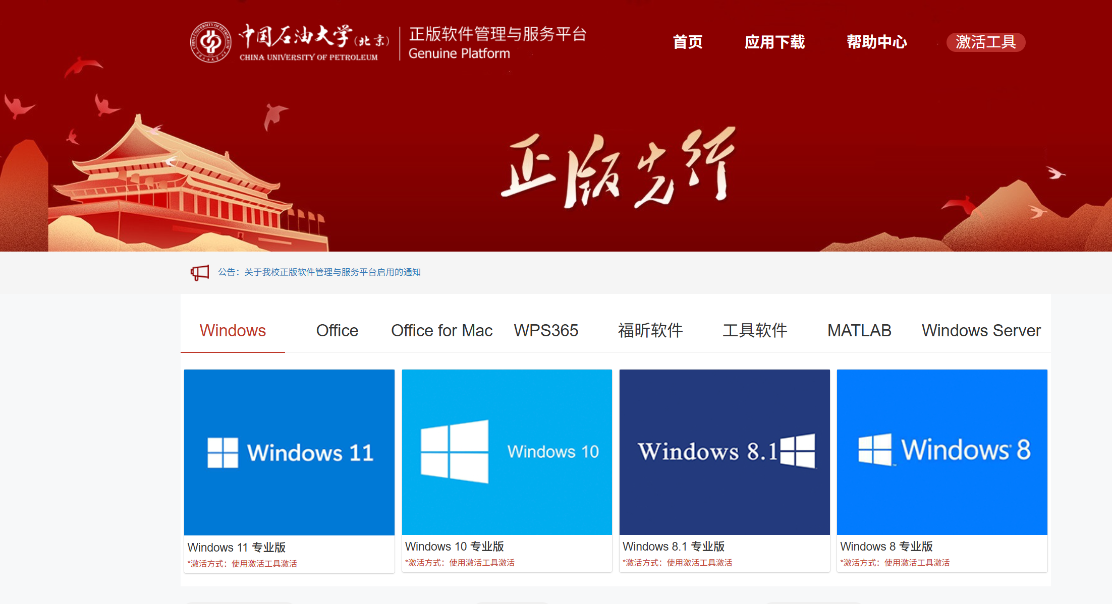 注:师生在校外使用请先登录VPN,再访问正版化平台网址。