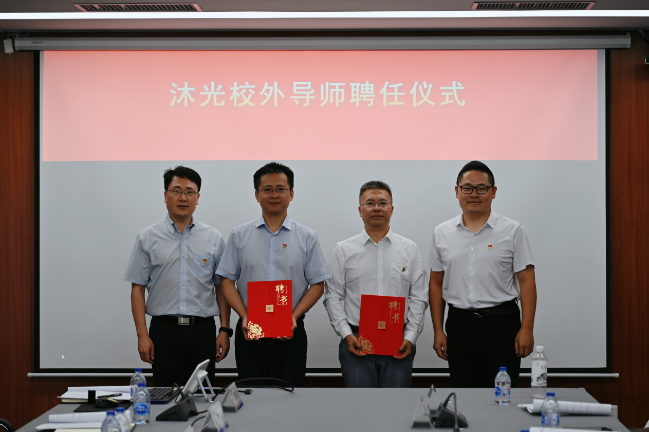 图:刘伟、刘东东为专家颁发“沐光校外导师”聘书
